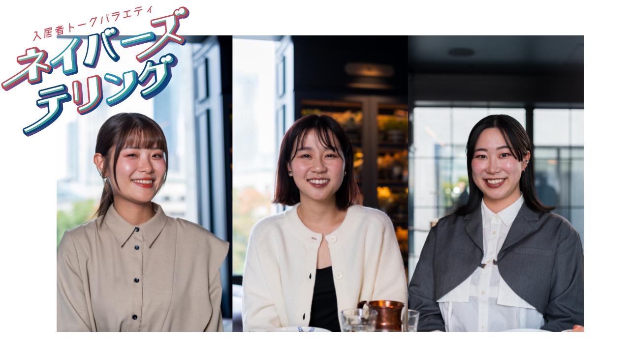 今回のクロストークは、そんなソーシャルアパートメントで新企画「ネイバーズテリング」に挑戦した営業スタッフ3人に集まってもらいました。ネイバーズテリングは、入居者さん達が、実際に体験したソーシャルアパートメントの暮らしを、自分たちの言葉で語り合い、その様子を動画で届けるトークバラエティです。