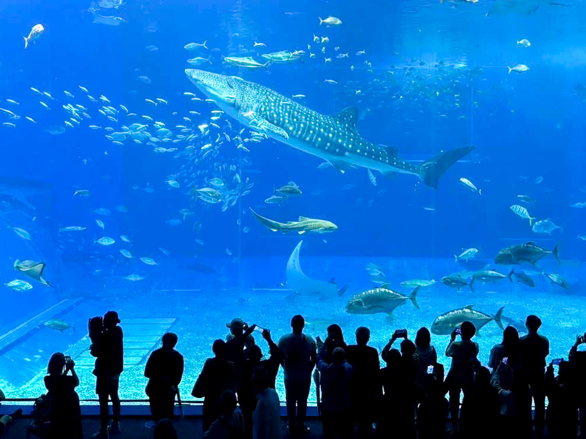 美ら海水族館では巨大な水槽でジンベエザメが悠々と泳ぐ姿や、海の生き物たちの多様性や生命の神秘に触れ、ゆったりとした時間に癒やされることができました。