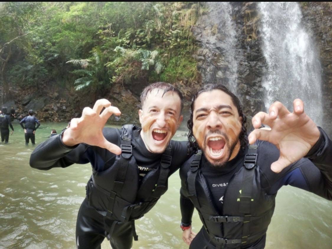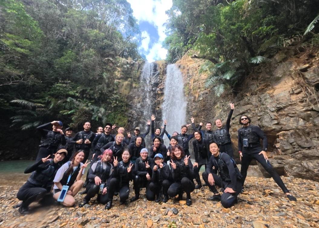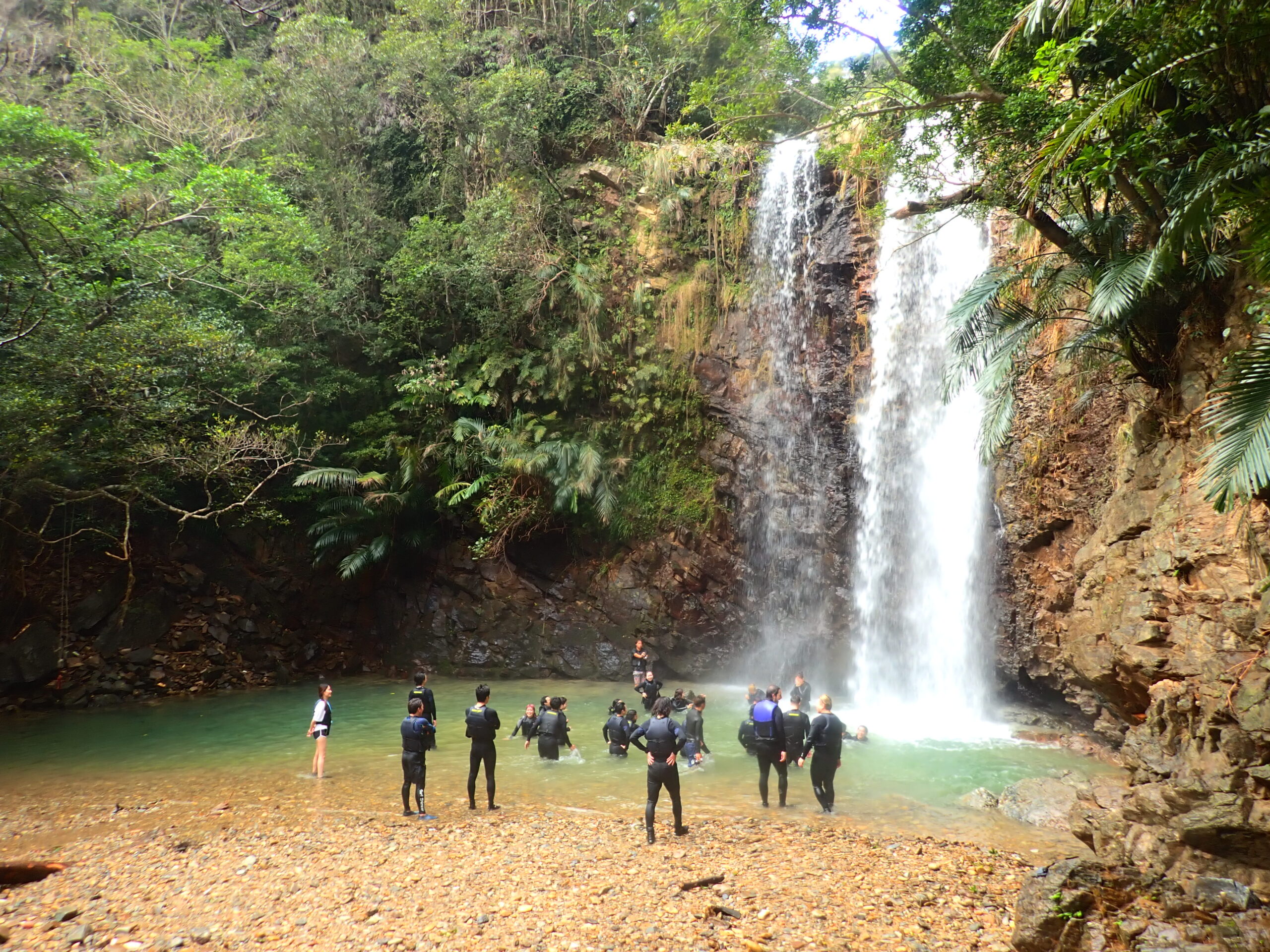 手を取り合いながらたどり着いた圧巻の滝の水しぶきを浴び、達成感溢れるアクティビティとなりました。