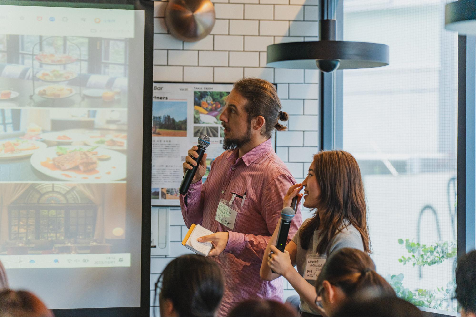 そのあとは、くじで引いたエリアとターゲットをもとに、1泊2日の過ごし方を提案するワークショップが行われました。先輩社員もチームに加わり、実際のゲストを思い浮かべながらアイデアを広げていきます。